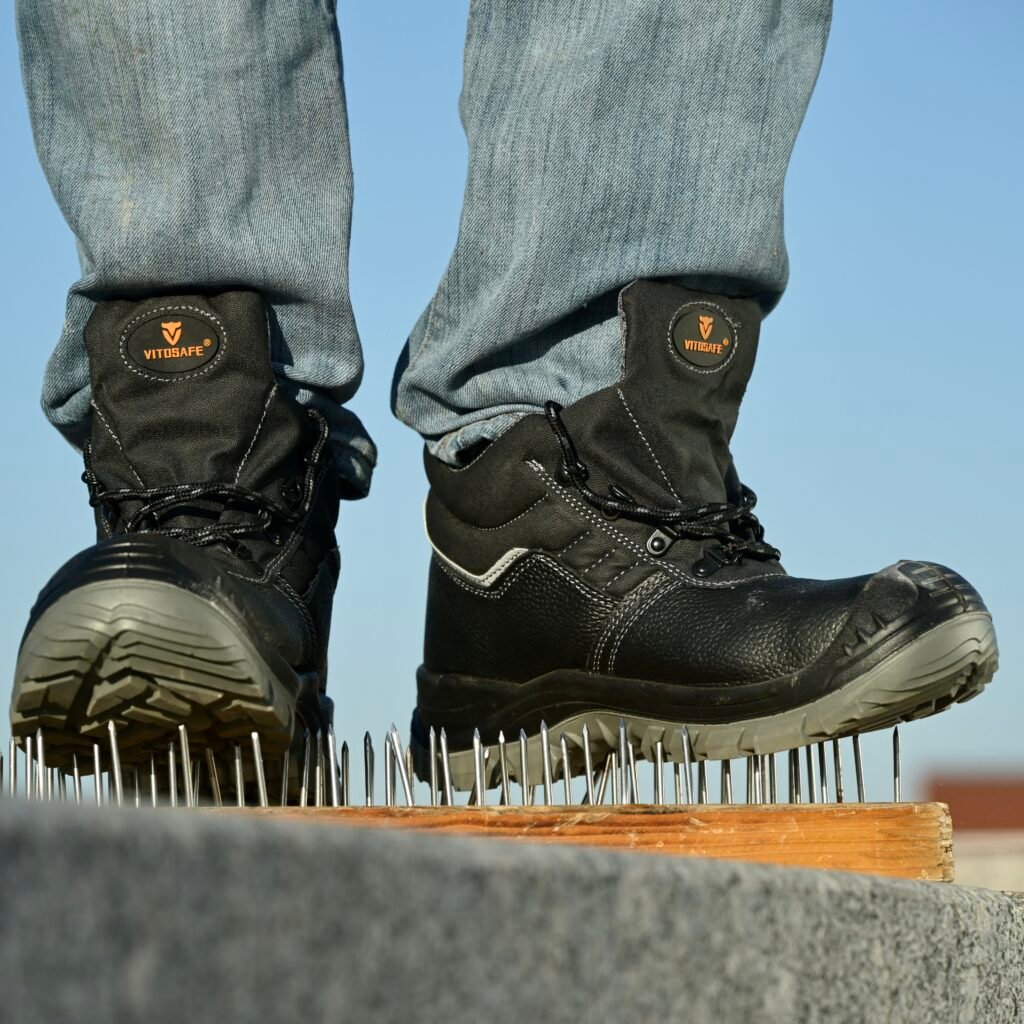 VITOSAFE Work Boots – VITOSAFE specialize in high quality leather steel toe work boots. They are equipped with a steel toe cap that aids in protecting your feet from anything heavy falling upon them. Moreover these boots have slip-resistant soles, so there are fewer chances you will slip and fall especially on oily or wet surfaces. The anti-puncture sole is another plus, because VITOSAFE best working boots are made to protect you from any sharp objects that might be found in the work environment whether you are a worker crushing at construction sites or back in warehouses.