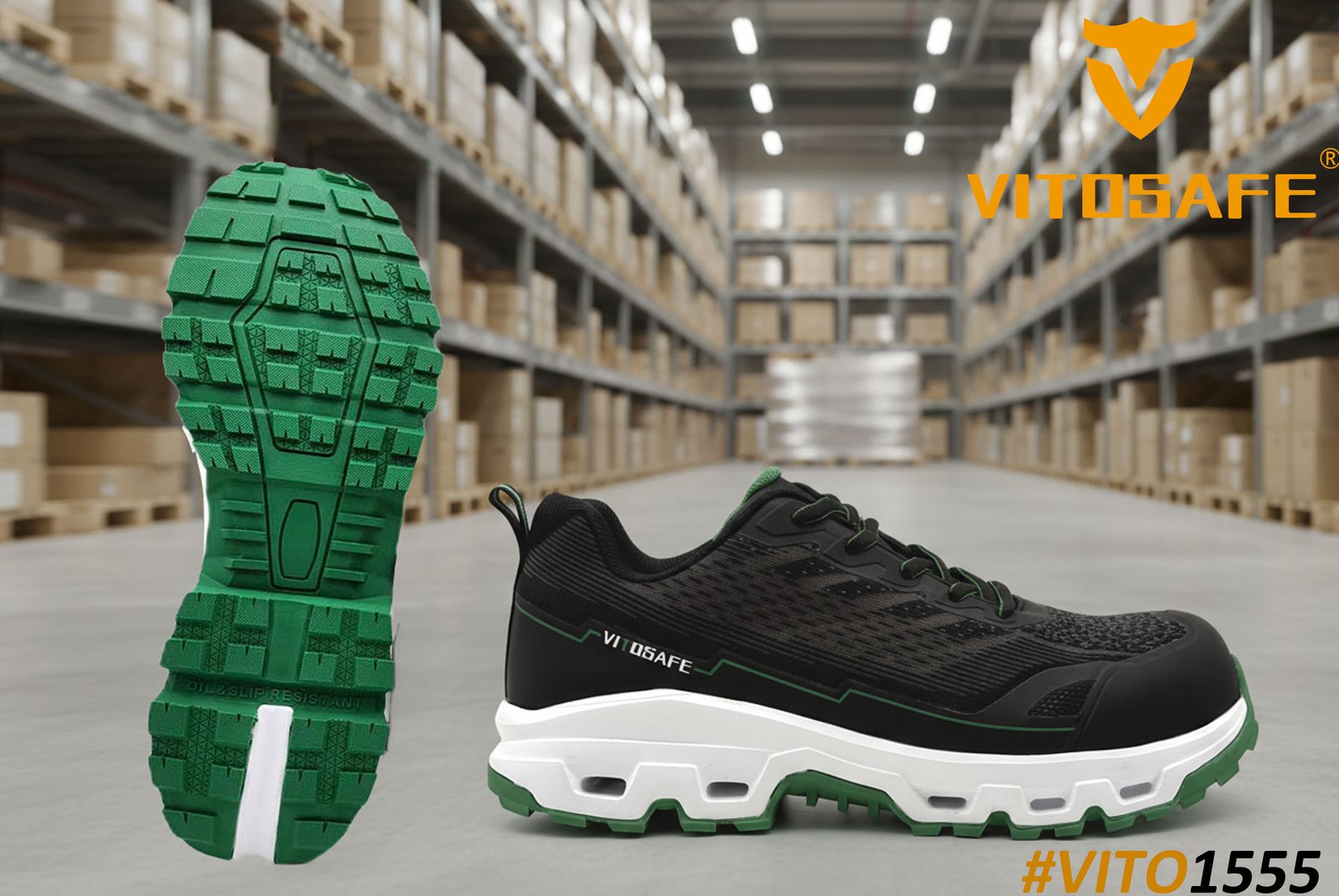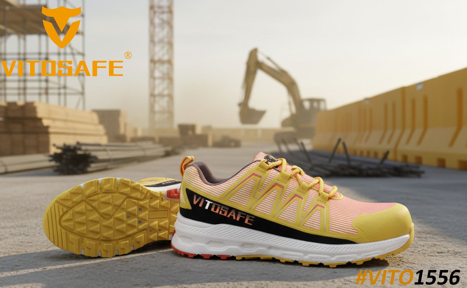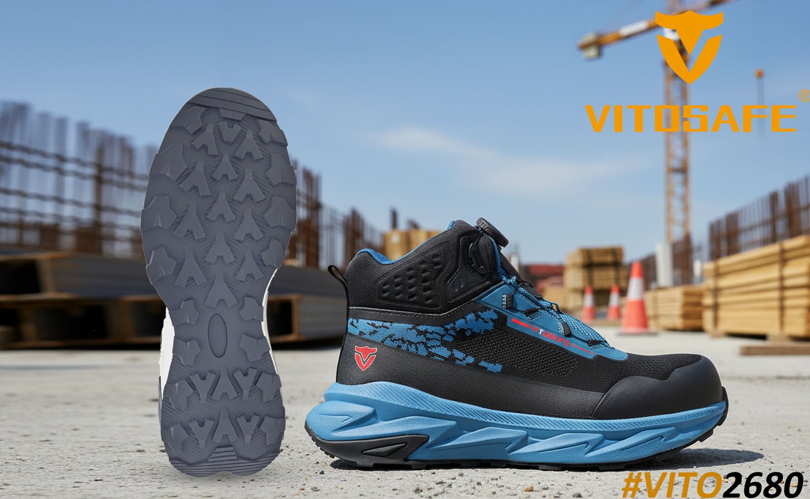 Lightweight EVA midsole safety soles: Cloud-like cushioning, fluid rocker gait, robust rubbergrip, cost-effective HOKA-style design with SRC/HRO protection.