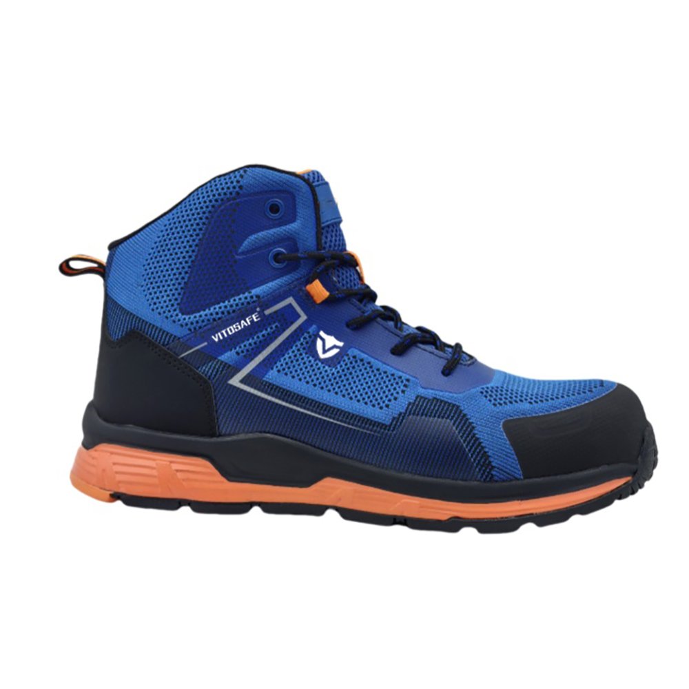 This work wear safety shoes is a mid cut style made of High quality fly knit mesh, which is anti smashing, anti puncture, comfortable, and has a non slip and wear-resistant outsole.