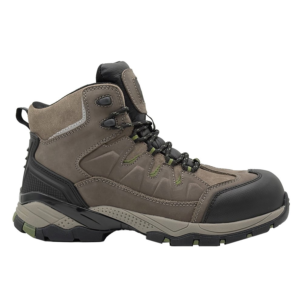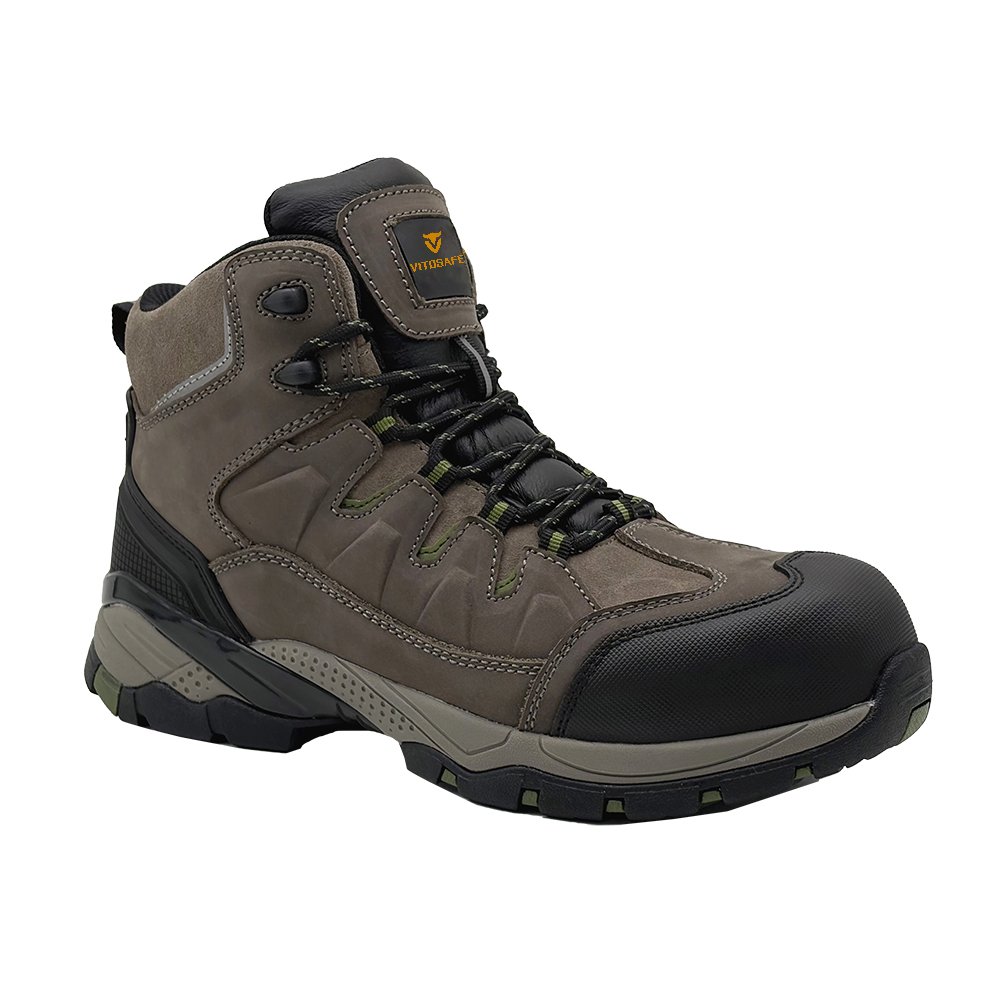 This work wear safety shoes is a mid cut style made of Nubuck cow leather, which is anti smashing, anti puncture, comfortable, and has a non slip and wear-resistant outsole.