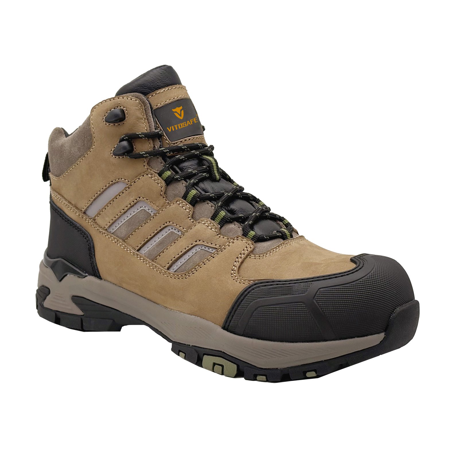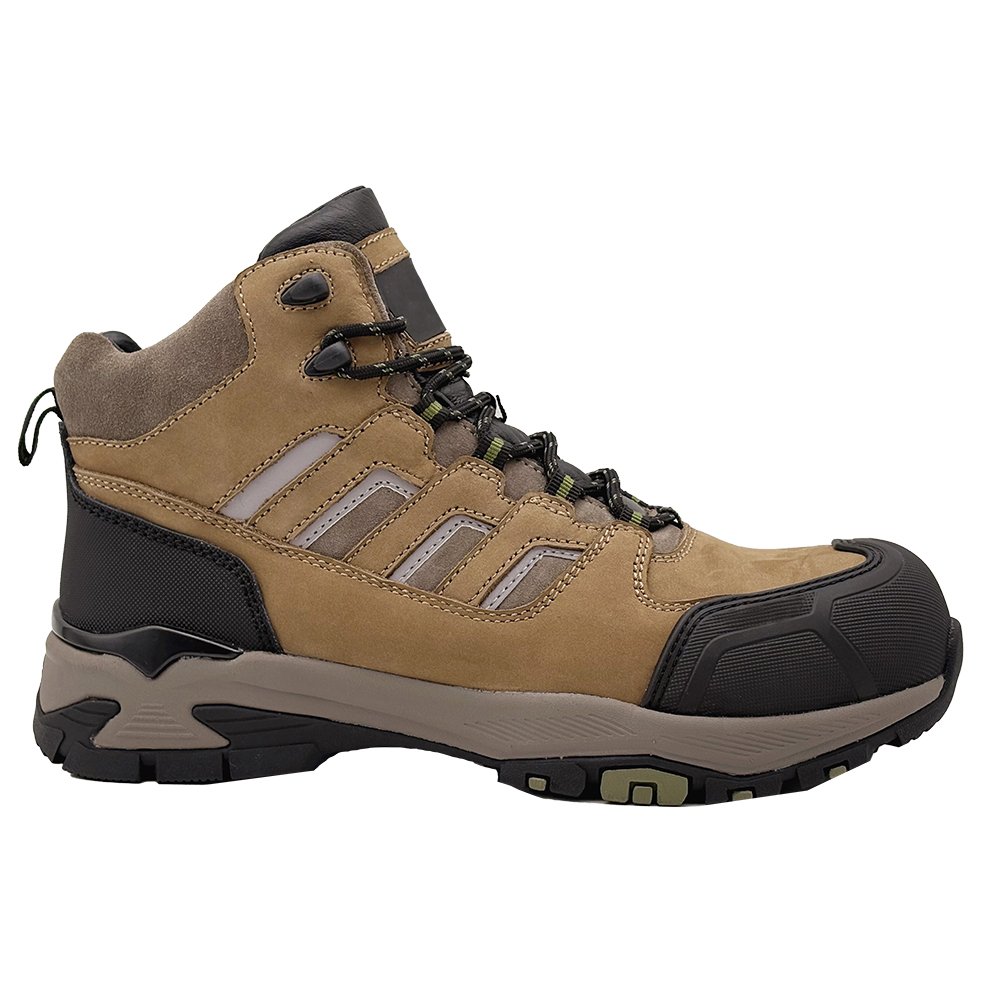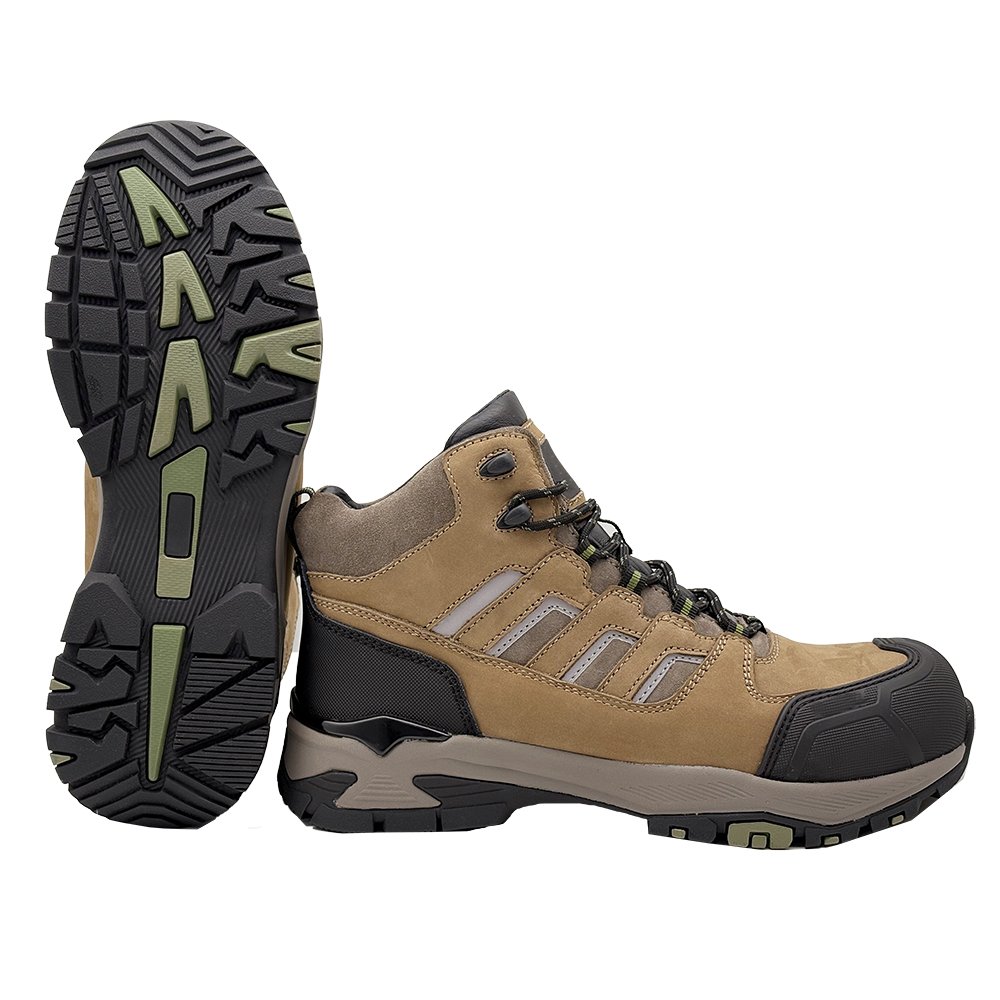 This work wear safety shoes is a mid cut style made of Nubuck cow leather, which is anti smashing, anti puncture, comfortable, and has a non slip and wear-resistant outsole.
